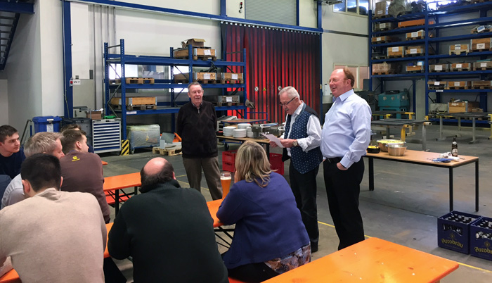 Plattling. Am 20.02.2017 feierte Seniorchef Hermann Wagner seinen 80. Geburtstag!  Und natürlich musste das gebührend gefeiert werden. Deshalb lud er die gesamte Belegschaft der Firma Wagner zu einem Geburtstagsessen in der Montagehalle ein.